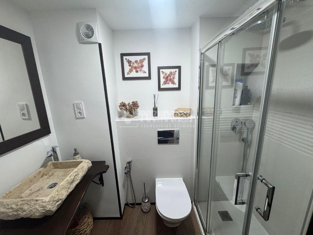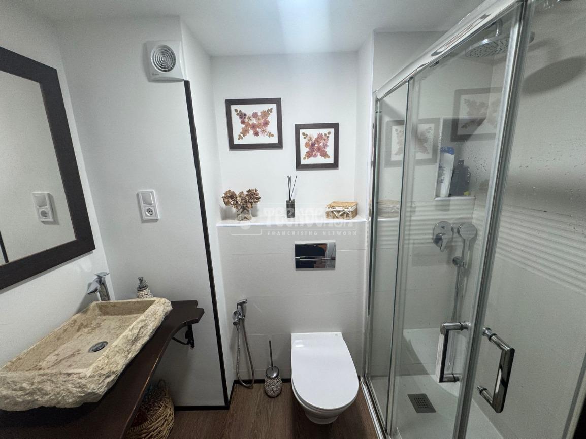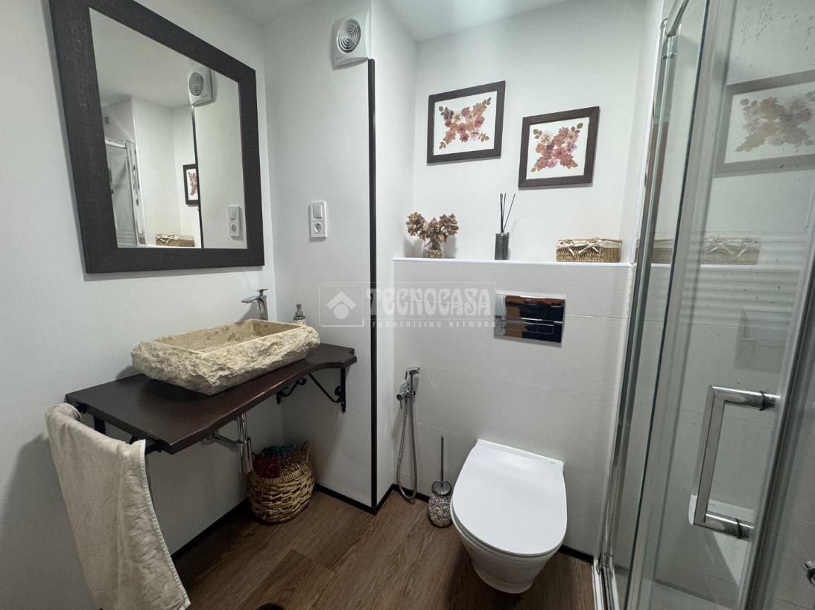 Un baño completo reformado con plato de ducha, moderno y funcional, diseñado para ofrecer comodidad y practicidad en el día a día.